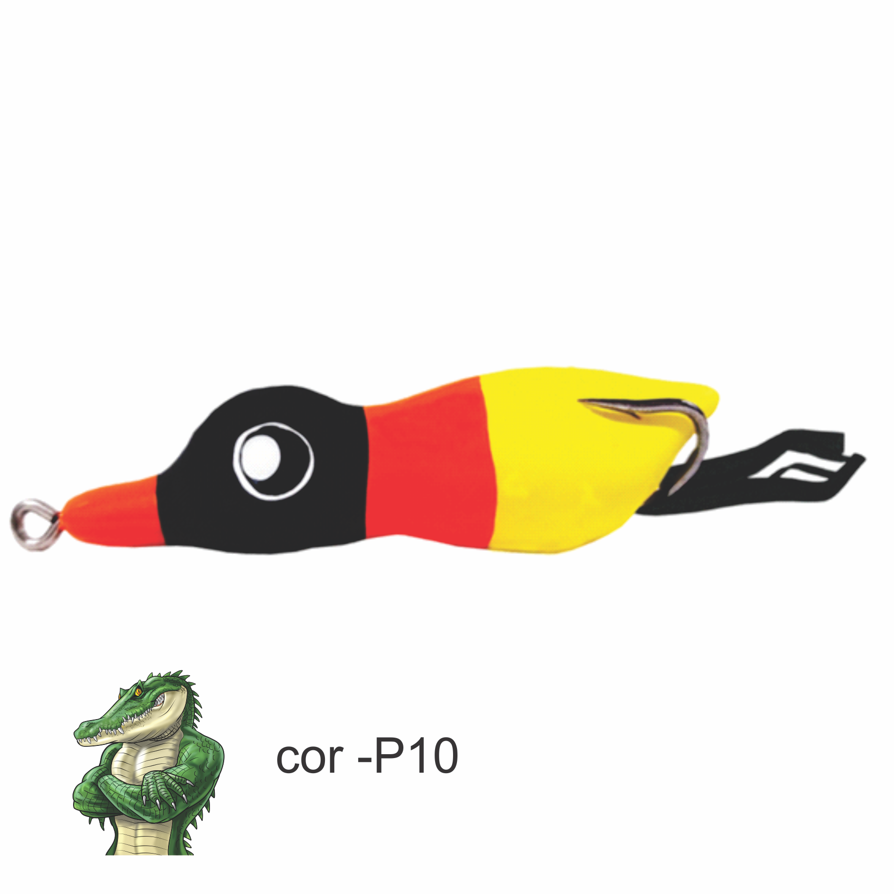 Isca tipo Frog New Quack Matadeira, projetada e desenvolvida com tecnologia de ponta. Fabricada com borracha de altíssima qualidade, possui sistema anti-enrosco com anzol reforçado e super afiado, o que garante um fácil trabalho por entre a vegetação aquática. Pitão Interno confeccionado em aço inox o que traz mais durabilidade a isca. As iscas são confeccionadas manualmente, o que garante mais atenção aos detalhes, maior qualidade e resistência. Isca ideal para pescaria de traíras, trairões, tucunarés, black bass e outros predadores. ESPECIFICAÇÕES: Marca: Matadeira Ação: Superfície. Comprimento: 7,7cm Peso médio de 12,6g DICA: O trabalho dessa isca é muito simples e eficaz, basta arremessar e fazer o recolhimento contínuo com toques de ponta de vara, podendo alternar a velocidade do recolhimento, até mesmo parando o recolhimento e voltando recolher novamente. Ela pode ser trabalhada tanto como Zara ou como Peitadinha sobre a água.